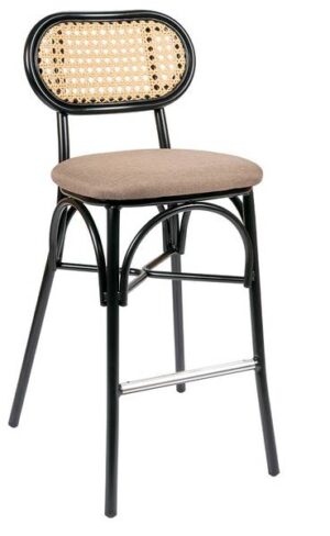 Taburetes de aluminio pintado en deco nogal    para hosteleria tapizados Taburetes con asiento y respaldo en rejilla sintetica natural Estructura en aluminio pintada epoxi Armazon de aluminio color negro y rejilla ...