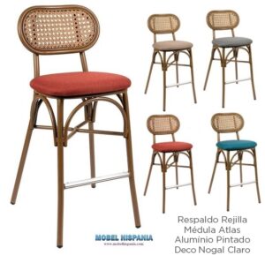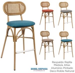 Taburetes altos para hosteleria en terrazas Taburetes de aluminio deco roble con asiento atlas interior y exterior Asiento en medula Atlas o volcan Acto para exterior Banqueta de aluminio pintada  en deco bambu ...