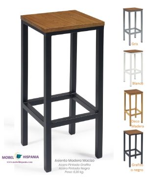 Taburete metalico gris o negra asiento madera antartida