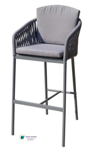 Taburete de aluminio gris asiento cuerda gris