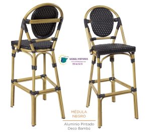 Taburete aluminio deco bambu asiento y respaldo en medula negra