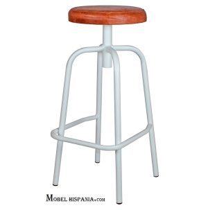 Taburete metalico blanco envejecido asiento laminado madera