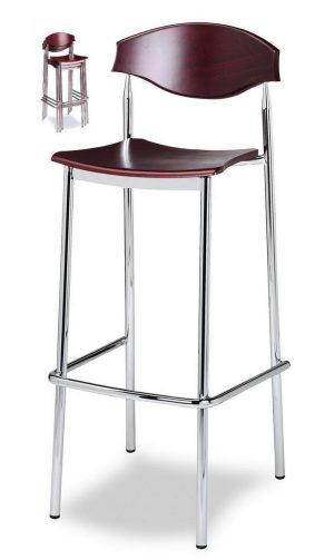 Mv.538 Taburete Cromado con asiento y respaldo de madera