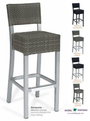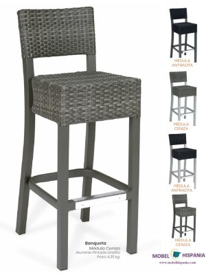 Taburete aluminio grafito con asiento y respaldo en medula sintetica color ceniza