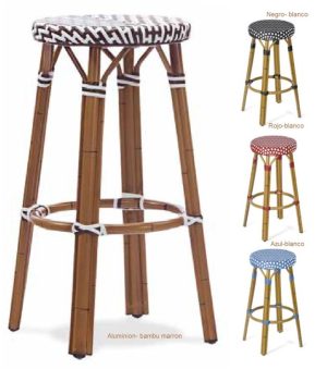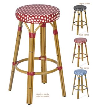 Taburete para terrazas aluminio bambú asiento medula rojo y blanco