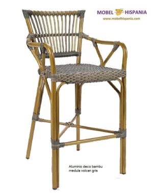 Taburete con brazos aluminio estilo parisino deco-nogal , medula ceniza-volcan