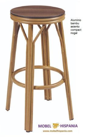 Taburete para terrazas aluminio bambú oscuro asiento medula marron y blanco