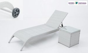 AG.2343B Tumbona rattan blanco estructura aluminio ruedas